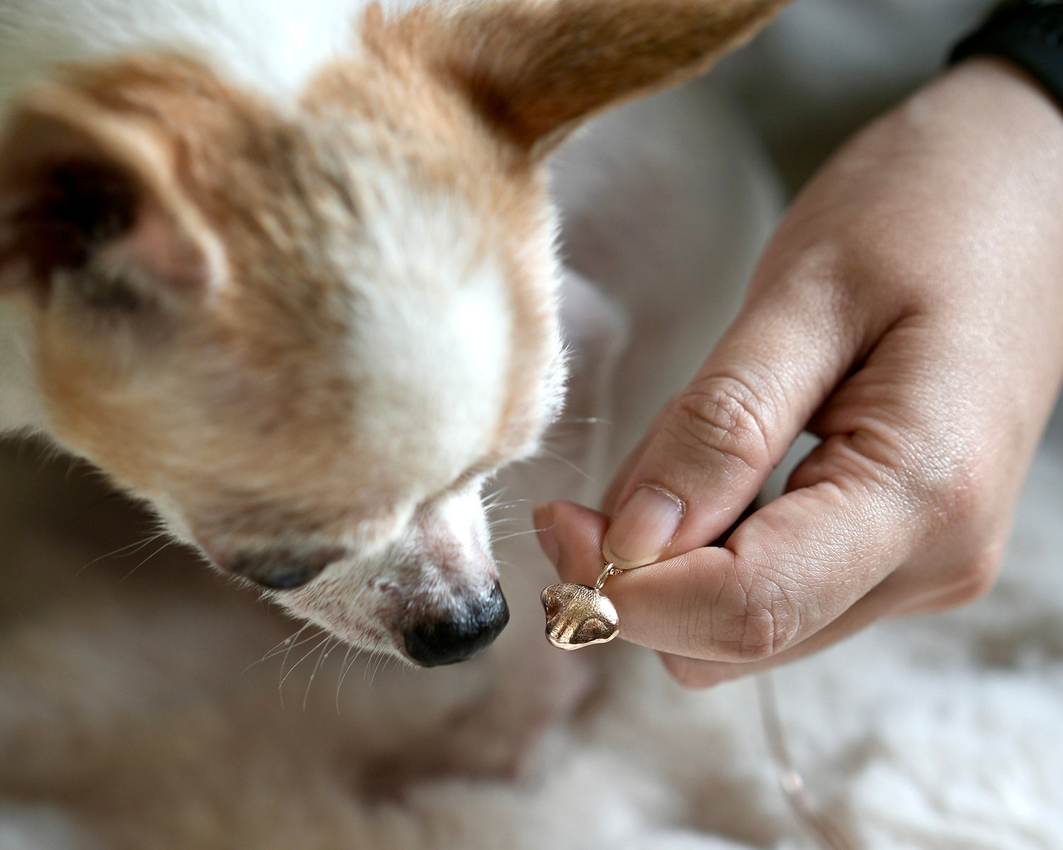 A pet print/fingerprint custom accessory is a unique keepsake made by transferring your pet's nose print, paw print, or a human fingerprint onto a metal accessory through the craftsmanship of skilled jewellers, allowing you to permanently preserve precious moments.